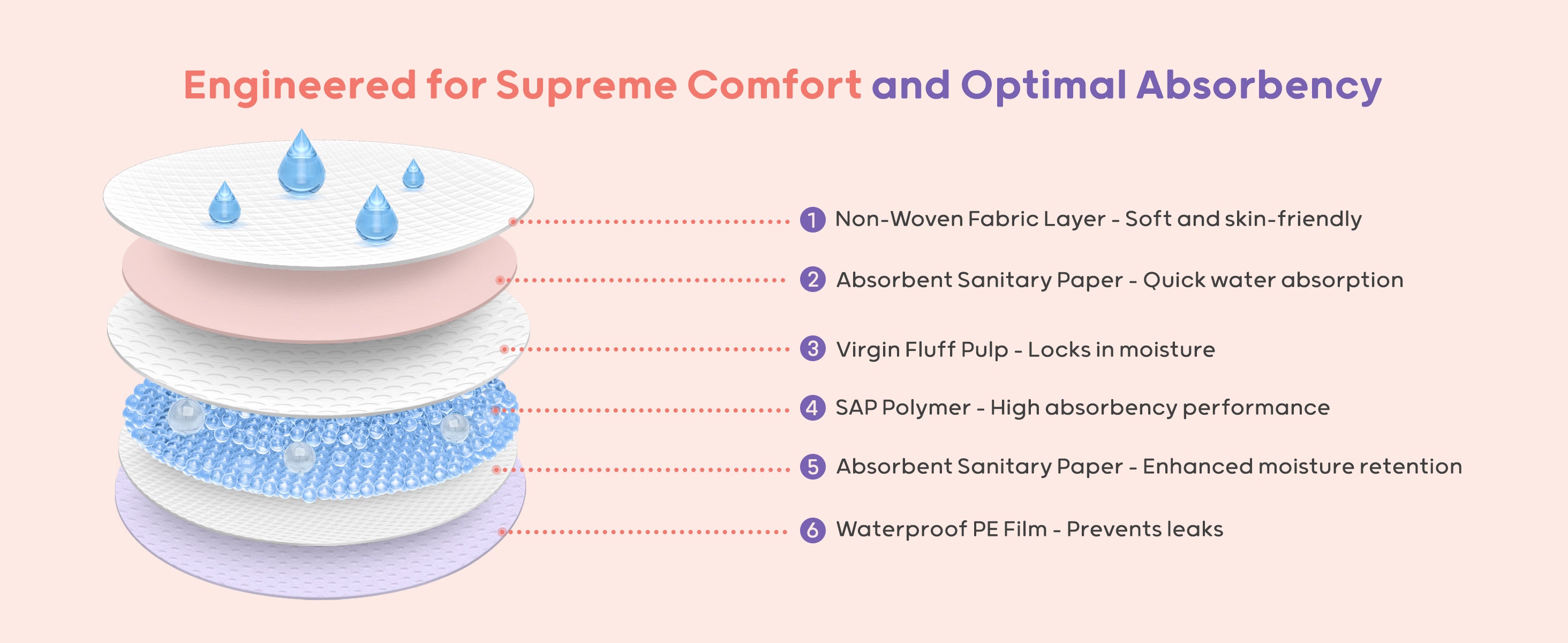 - Zero Fragrances: Safe and comfortable for mothers' skin, our pads are free from fragrances, BPA, and BPS. Catering to sensitive skin and ensuring a safe, irritation-free experience.