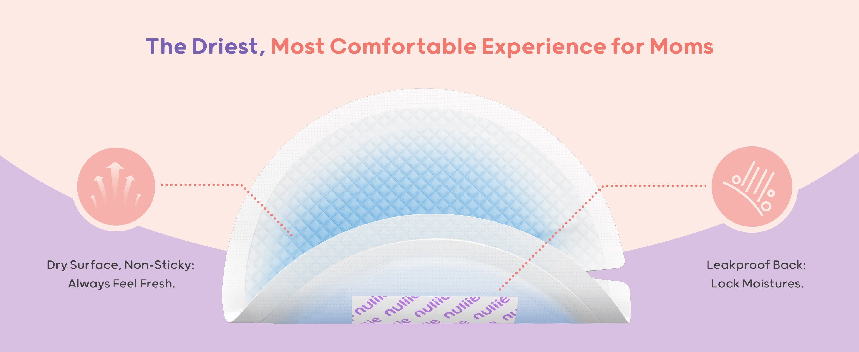 - Instant Absorption & Long-Lasting Lock-In Moisture: Features a polymer layer for rapid absorption of breast milk and effective moisture lock-in, maintaining dryness and comfort. Day or night, nuliie disposable nursing pads protect your comfort, preventing embarrassing leaks with confidence and ease.