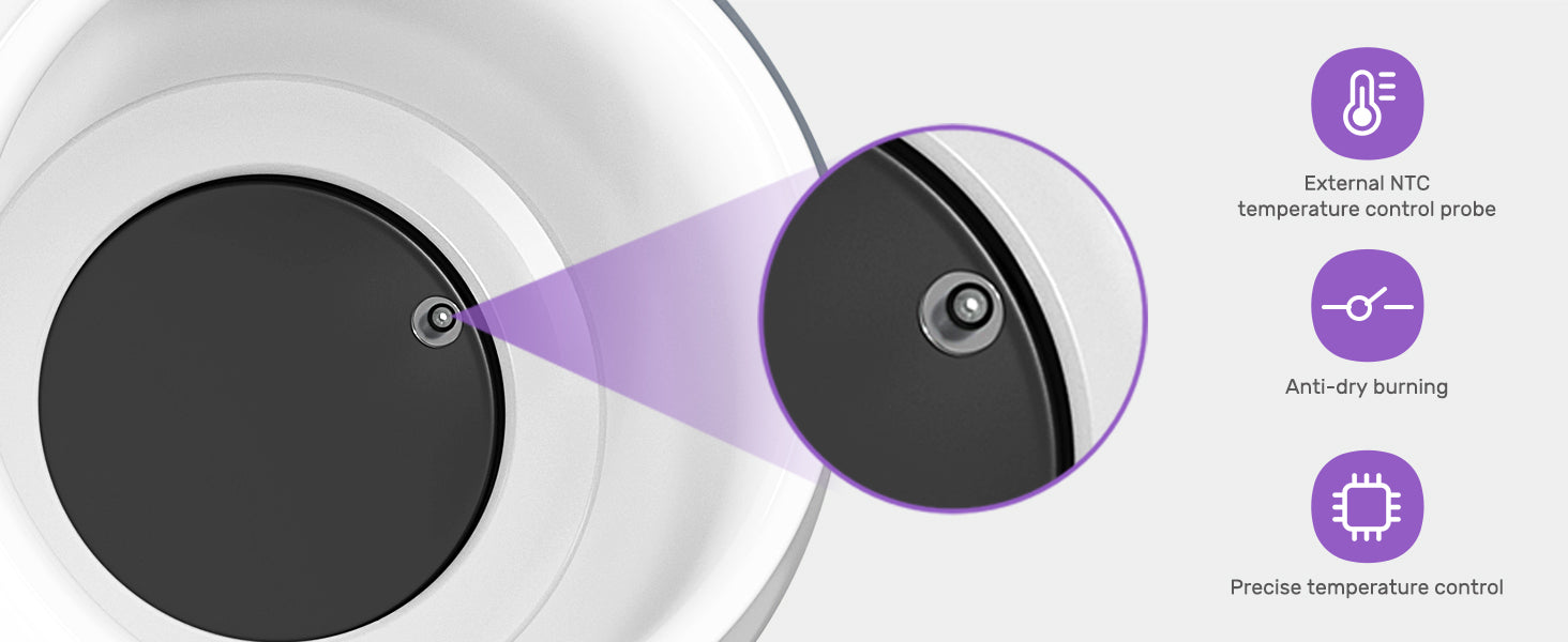 Smart chip, NTC temperature sensor, uniform heating, ensure the same precise temperature control of different milk volumes, and protect the nutrition of breast milk. The milk warmer also has an anti-dry function, making it safer to power off intelligently.
