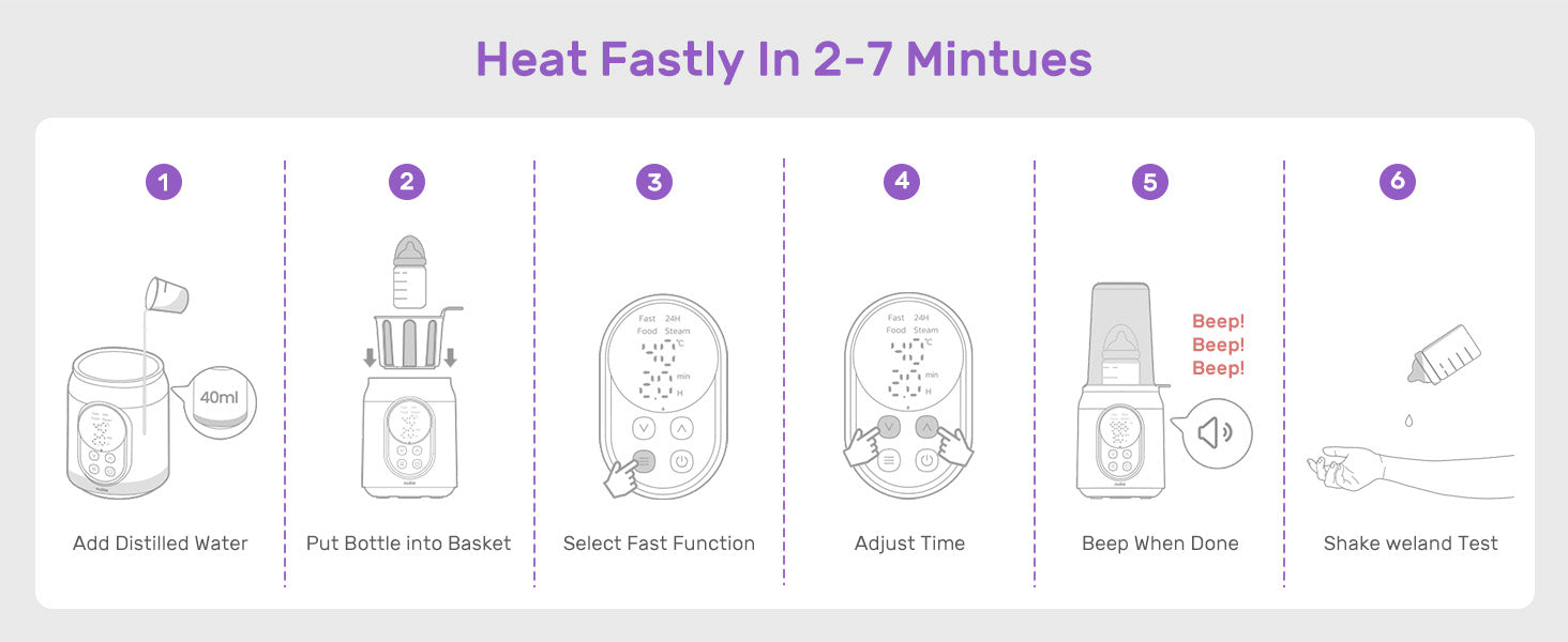 2-7 minutes of rapid heating, giving the baby the most timely comfort.