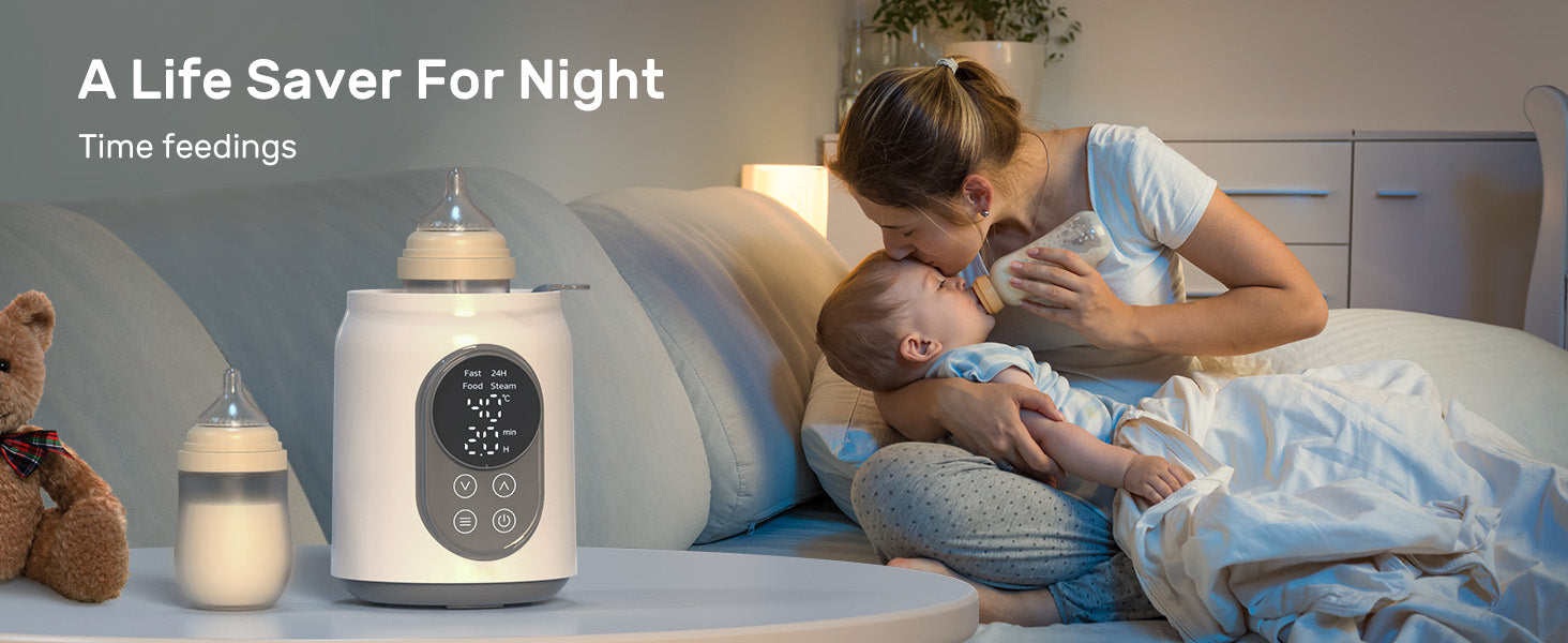 - GET NIGHT FEEDING 10 TIMES EASIER: Newborns can easily need feedings at night. Our baby bottle warmer has a 24-hour constant temperature function, which evenly heats the water in the bottle to a preset temperature and keeps it warm, so the baby can drink it when he is hungry, and it is convenient to flush formula milk at any time. Even new parents can take it in stride.