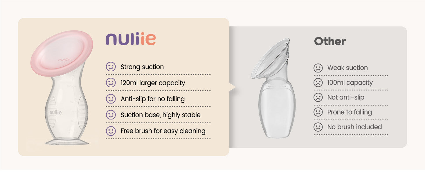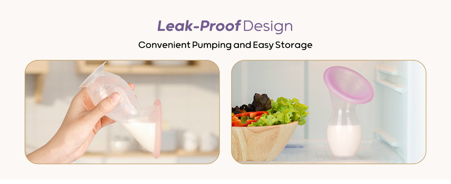 - No Leaks, No Spills: The bottom suction cup keeps the silicone breast pump stable, allowing effortless one-handed use. The included lid prevents spills, making storage easy and protecting every drop of milk.