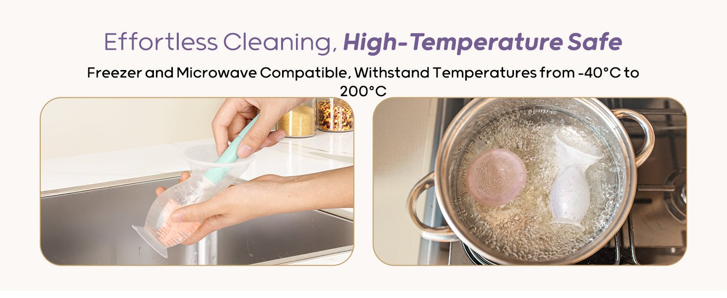 - Easy-to-Clean One-Piece Design: The seamless silicone breast pump is simple to clean, with an included brush that reaches every corner for hygiene and convenience. It is also dishwasher-safe, making cleanup even easier for busy moms.